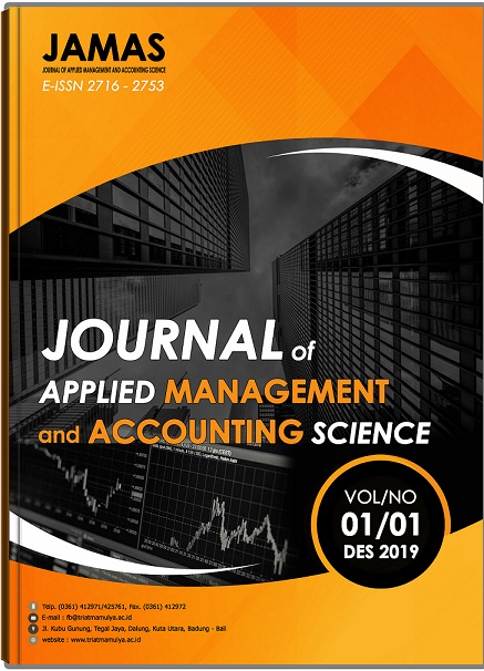 Journal of Applied Management and Accounting Science (JAMAS) is a medium to exchange the information and scientific work between lecturers, alumni, students, practicioners and observers especially in the fields of management and accounting.